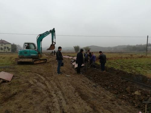 2018年2月20日,施工隊(duì)伍組織施工設(shè)備、原料和施工人員進(jìn)場,對(duì)質(zhì)量不合格溝渠全部拆除,并同步進(jìn)行重建。業(yè)主單位縣農(nóng)業(yè)委安排專業(yè)技術(shù)人員及馬頭村兩委安排專人,駐守工地,會(huì)同監(jiān)理人員進(jìn)行全程質(zhì)量監(jiān)管,確保嚴(yán)格按照設(shè)計(jì)規(guī)范施工,確保3月底前保質(zhì)保量完成整改重建任務(wù)。