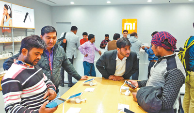 印度南德里第一家小米手機(jī)專賣店內(nèi)消費(fèi)者眾多。記者 苑基榮 攝
