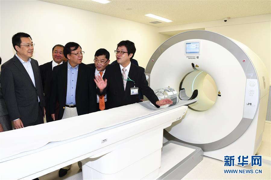 2017年8月24日,在日本名古屋,人們參觀中國的醫(yī)療設備“聯(lián)影96環(huán)PET-CT”,這是“中國智造”大型高端醫(yī)療設備首次打入日本市場。PET-CT是正電子發(fā)射計算機斷層掃描技術的英文簡稱,這種醫(yī)療設備可對人體進行全方位掃描,達到發(fā)現(xiàn)病灶和診斷疾病的目的。新華社記者華義 攝