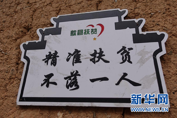 貼在村道旁的“精準(zhǔn)扶貧”標(biāo)語(yǔ)。新華網(wǎng) 卓越 攝