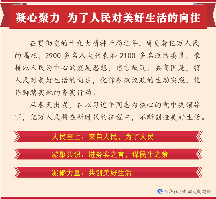在貫徹黨的十九大精神開局之年,肩負著億萬人民的囑托,2900多名人大代表和2100多名政協(xié)委員,秉持以人民為中心的發(fā)展思想,建言獻策、共商國是,將人民對美好生活的向往,化作參政議政的生動實踐,化作腳踏實地的務(wù)實行動。
