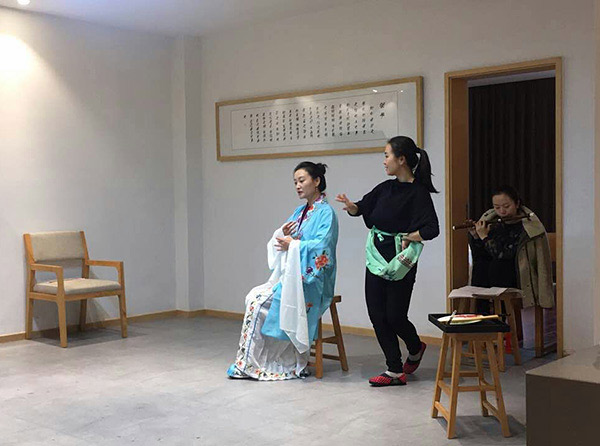 “作為90后,昆曲讓我逃離快節(jié)奏時(shí)代的紛擾,穿越到古代,做了回享受慢生活的人,也為我打開了一扇窗,讓我學(xué)詩詞、學(xué)禮儀、學(xué)做人……”因?yàn)橥馄藕蛬寢尪际窃絼∶裕?0后學(xué)員宋玟瑾從小就跟戲曲結(jié)緣。聽著戲曲長大的她,在曲社里除了學(xué)習(xí)昆曲外,還學(xué)習(xí)曲笛,為曲友伴奏唱曲。在生活中,昆曲對(duì)她來說是“曲如空氣”,不管是做飯、打掃、還是洗澡,都會(huì)打開藍(lán)牙音箱一邊聽一邊跟唱。為了盡快學(xué)會(huì)吹曲笛,就算是在出差在路上,也會(huì)戴上耳機(jī),看著曲譜,打著節(jié)奏聽昆曲。通過學(xué)習(xí)昆曲,她對(duì)中國傳統(tǒng)文化更加熱愛,覺得傳統(tǒng)文化更加立體而有趣。