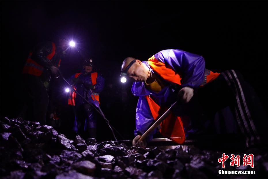 倒春寒的天氣讓江西各地“陰晴不定”。3月19日晚間,位于京九鐵路江西南昌至九江區(qū)段,百余名鐵路工人頭頂著燈光在寒雨中進(jìn)行更換枕木施工作業(yè)。文/汪翰 李利群 圖/汪翰