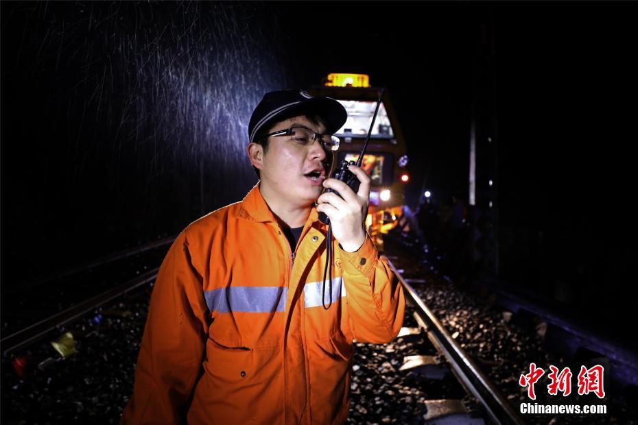 夜幕下的京九鐵路換枕工