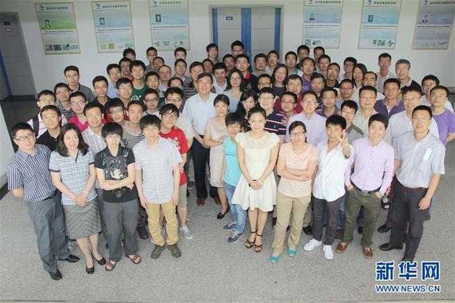 盧柯與其團(tuán)隊(duì)的合影(照片中間身著淺色襯衫者為盧柯,2014年6月4日攝)。