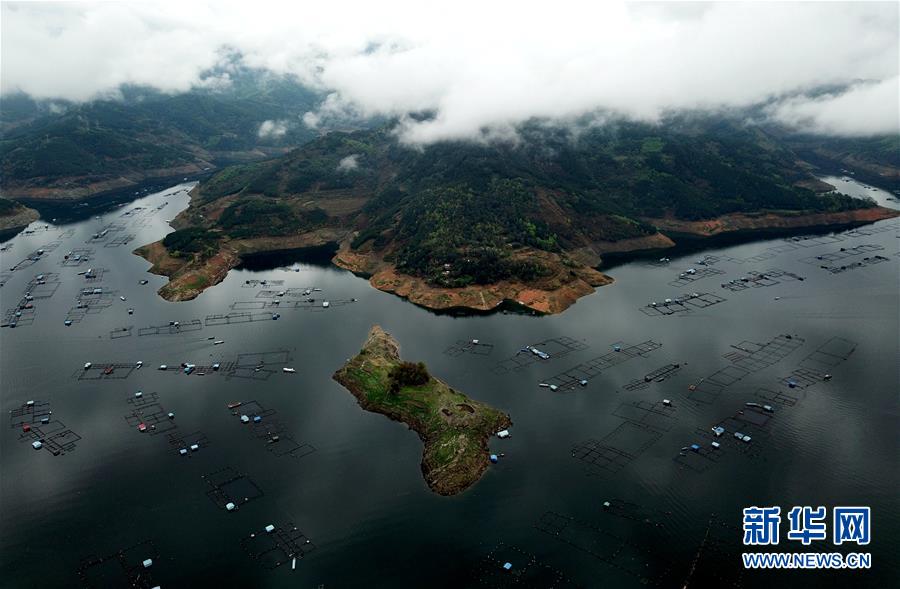 這是無人機拍攝的天生橋庫區(qū)紅水河水上“田園”景觀(3月28日攝)。春耕春種時節(jié),在廣西隆林各族自治縣天生橋庫區(qū),當地農民發(fā)展的水上養(yǎng)魚場景與紅水河兩岸景色交相融合,構成一幅幅美麗的春日畫卷。新華社記者張愛林攝