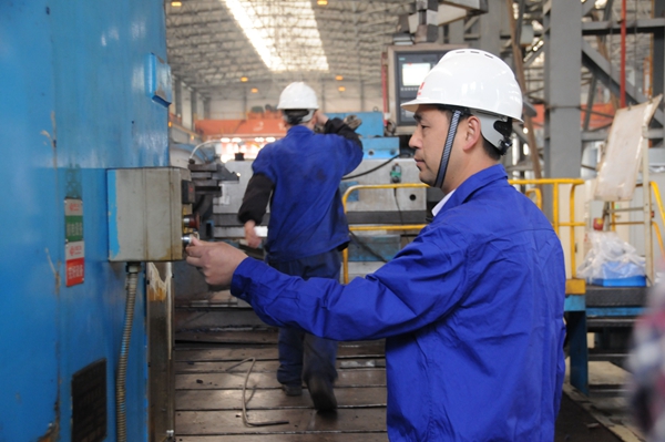 國(guó)機(jī)重裝二重裝備鑄鍛公司加工一廠的車間內(nèi),機(jī)器轟隆,大型數(shù)控臥車床排排而立。在這里,龍小平帶領(lǐng)團(tuán)隊(duì)完成了多件百萬(wàn)級(jí)核電、水電、火電等大型軸類件產(chǎn)品的精深加工。