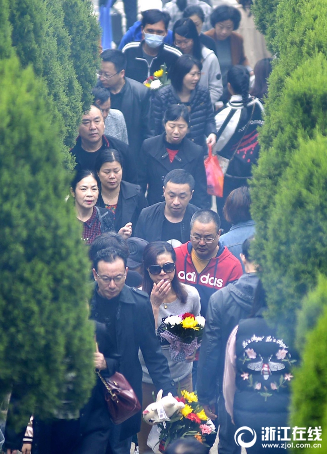 4月5日清明節(jié)上午,前往浙江省定舟山市定海區(qū)清陵掃墓人絡(luò)繹不絕,不少掃墓人用鮮花祭祀,寄托哀思懷念逝去的親人,倡導(dǎo)環(huán)保綠色的清明。(浙江在線拍友 胡社友 攝)