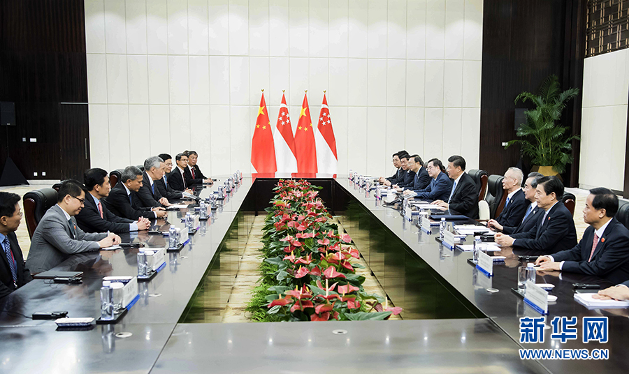 習(xí)近平指出,中新關(guān)系發(fā)展同中國改革開放息息相關(guān)。當(dāng)前,中國特色社會主義進(jìn)入新時代,新加坡正在實(shí)施“未來經(jīng)濟(jì)發(fā)展戰(zhàn)略”。雙方要結(jié)合新形勢新特點(diǎn),對雙邊關(guān)系和務(wù)實(shí)合作作出新的戰(zhàn)略謀劃和頂層設(shè)計(jì)。雙方要推進(jìn)政府間大項(xiàng)目合作。要加強(qiáng)“一帶一路”框架內(nèi)合作,繼續(xù)打造好兩國共建的“南向通道”,將“一帶”和“一路”更好連接起來。中方愿同包括新方在內(nèi)東盟國家加強(qiáng)溝通協(xié)調(diào),實(shí)現(xiàn)“一帶一路”倡議同東盟發(fā)展規(guī)劃更好對接,構(gòu)建更為緊密的中國-東盟命運(yùn)共同體,希望新加坡發(fā)揮積極建設(shè)性作用。