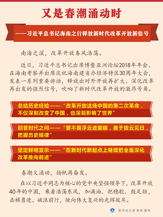 新華社北京4月13日電 題:又是春潮涌動(dòng)時(shí)——習(xí)近平總書記海南之行釋放新時(shí)代改革開放新信號(hào)