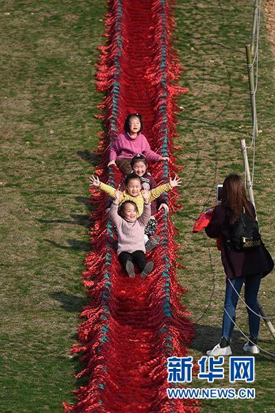 小朋友在湖州市吳興區(qū)妙西鎮(zhèn)原鄉(xiāng)小鎮(zhèn)體驗(yàn)滑草(3月10日攝)。新華社記者 黃宗治 攝