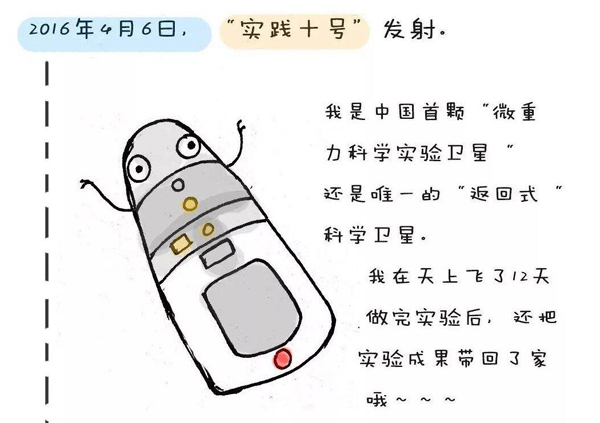 2016年4月6日,實(shí)踐十號(hào)返回式科學(xué)實(shí)驗(yàn)衛(wèi)星成功發(fā)射。實(shí)踐十號(hào)衛(wèi)星是空間科學(xué)戰(zhàn)略性先導(dǎo)專項(xiàng)首批確定的科學(xué)衛(wèi)星項(xiàng)目中唯一的返回式衛(wèi)星,也是中國第一個(gè)專用的微重力實(shí)驗(yàn)衛(wèi)星。2016年4月18日,實(shí)踐十號(hào)衛(wèi)星成功返回。