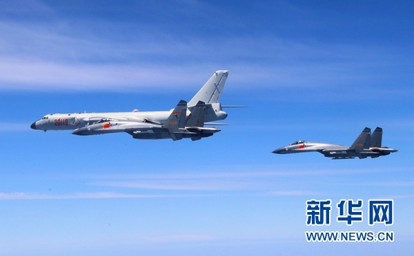 4月26日,人民空軍轟-6K等多型戰(zhàn)機實施“繞島巡航”訓練課題。 新華社發(fā)(吳岳鵬 攝)