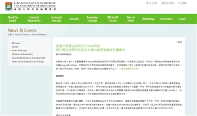 香港大學(xué)醫(yī)學(xué)院官方網(wǎng)站刊載了相關(guān)報(bào)道。網(wǎng)站截圖
