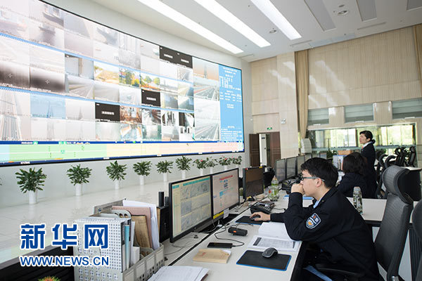 工作人員在杭州灣跨海大橋監(jiān)控中心進行實時監(jiān)控(4月19日攝)。新華社記者 翁忻旸 攝