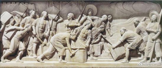 紀(jì)念碑浮雕上沒(méi)有著名人物,都是人民群眾