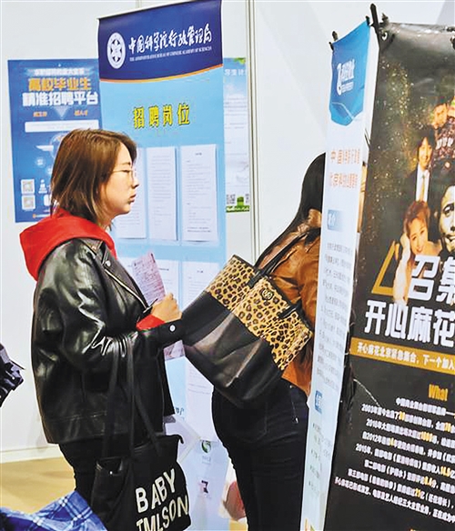 在招聘會(huì)現(xiàn)場(chǎng),身著正裝的周源走走轉(zhuǎn)轉(zhuǎn),仔細(xì)閱讀著用人單位的招聘海報(bào)。作為一名中文系碩士應(yīng)屆畢業(yè)生,周源手里已經(jīng)有了好幾份錄取通知書,她仍然顯得有點(diǎn)焦慮。還有2個(gè)多月就要畢業(yè)了,是回老家沈陽(yáng)還是留在北京,她坦言還沒有想好。回到老家離父母更近一些,在大城市里發(fā)展機(jī)會(huì)更多,究竟如何取舍,她遲遲做不出決定。