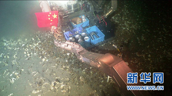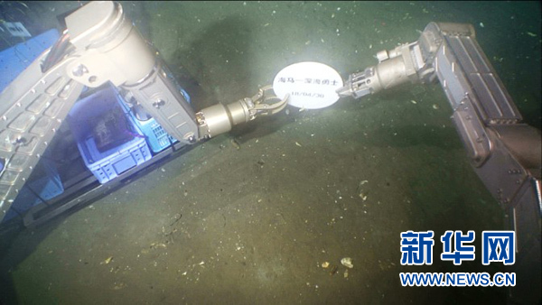 這是“海馬”號(hào)遙控潛水器拍攝的海底聯(lián)合工作過程。新華社發(fā)