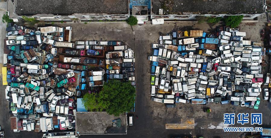 廣州市金屬回收有限公司購銷部堆放的報(bào)廢汽車(4月17日無人機(jī)拍攝)。新華社記者 鄧華 攝