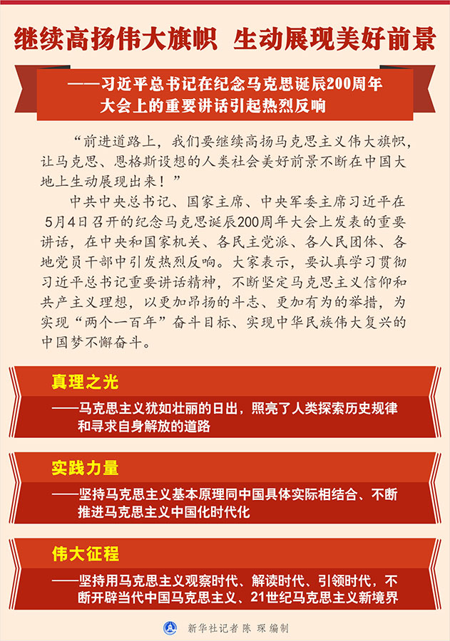 新華社北京5月4日電 題:繼續(xù)高揚偉大旗幟 生動展現(xiàn)美好前景——習近平總書記在紀念馬克思誕辰200周年大會上的重要講話引起熱烈反響