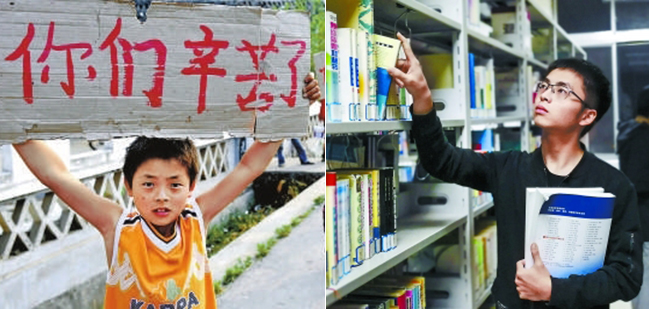 現(xiàn)場(chǎng)有人小聲說(shuō):“這是從災(zāi)區(qū)走出來(lái)的孩子。”