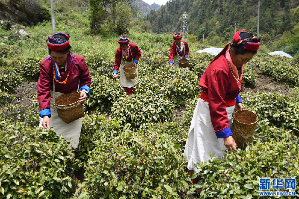 村民在勒鄉(xiāng)茶園采茶(5月12日 攝)。新華網(wǎng)記者 陳琳 攝
