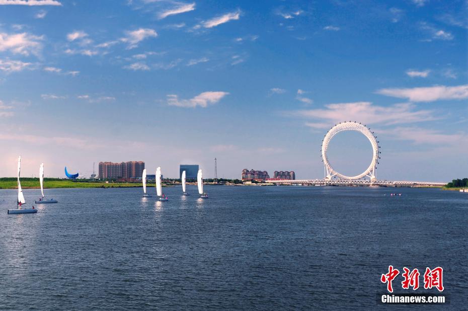 位于山東濰坊濱海區(qū)白浪河入??谔幍氖澜缱畲鬅o軸式摩天輪“渤海之眼”正式投入使用。文/王勇鋼 袁彥奎 圖/王勇鋼