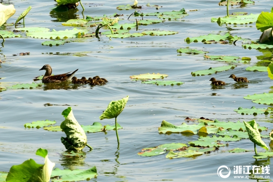 5月15日,西湖斷橋荷塘出現(xiàn)了今年第4窩小鴛鴦,此次共10只。與西湖第1窩時(shí)的獨(dú)苗相比,此窩可算是一個(gè)大家庭, 這讓鴛鴦媽媽忙不過(guò)來(lái)了。(浙江在線(xiàn)拍友 里爾 攝)