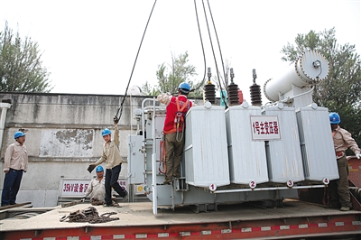 新機場跑道規(guī)劃范圍內(nèi)的老變電站將于本月拆除。昨日,南各莊變電站內(nèi)主變壓器拆除后吊運,宣告該變電站正式退役。