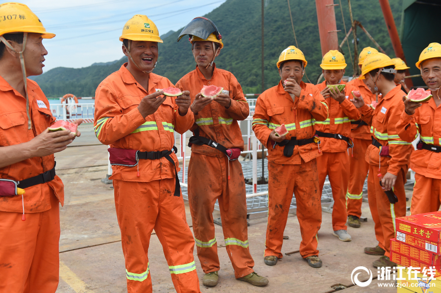 5月16日,杭州持續(xù)高溫,最高氣溫達(dá)37.5℃。在G25長(zhǎng)深高速德清至富陽(yáng)段擴(kuò)容工地,工人正在抓緊建設(shè)跨富春江大橋。承建施工項(xiàng)目的浙江交工宏途交通建設(shè)有限公司,為一線建設(shè)者送來(lái)了清涼用品和防暑藥品,慰問(wèn)高溫下作業(yè)的施工人員。(浙江在線記者 吳元峰 攝)