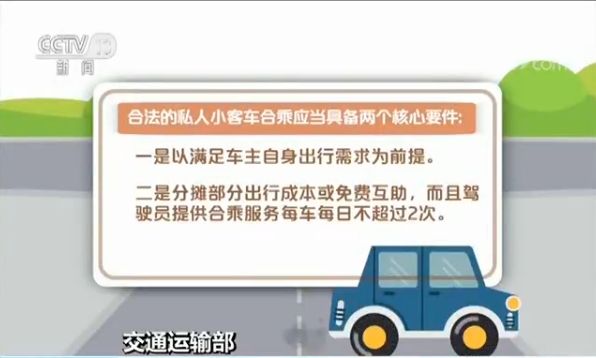 交通運(yùn)輸部表示,合法的私人小客車合乘應(yīng)當(dāng)具備兩個(gè)核心要件:一是以滿足車主自身出行需求為前提,二是分?jǐn)偛糠殖鲂谐杀净蛎赓M(fèi)互助,而且駕駛員提供合乘服務(wù)每車每日不超過2次。