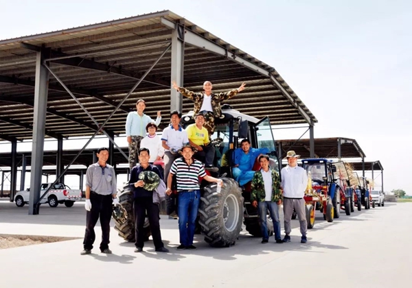 農(nóng)科畢業(yè)生姚珊(三排左一)在寧夏千葉青農(nóng)業(yè)科技發(fā)展公司生產(chǎn)基地與同事合影