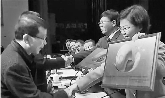 3月20日,縉云縣委書記楊秀清、縣長李一波(右一)給“蝸牛獎”得主頒獎。(視頻截圖)