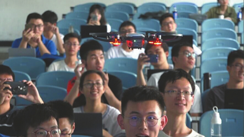 魏驍勇研發(fā)的人臉識(shí)別無人機(jī)出現(xiàn)在川大課堂。