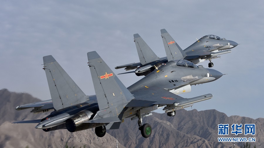 參加空軍“紅劍-2018”體系對抗演習(xí)的戰(zhàn)機(jī)聽令起飛(5月24日攝)。新華社發(fā)(溫志軍攝)