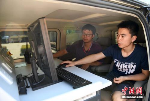 資料圖:2017年高考,技術(shù)人員在福州一考場開展無線電信號監(jiān)測。張斌 攝