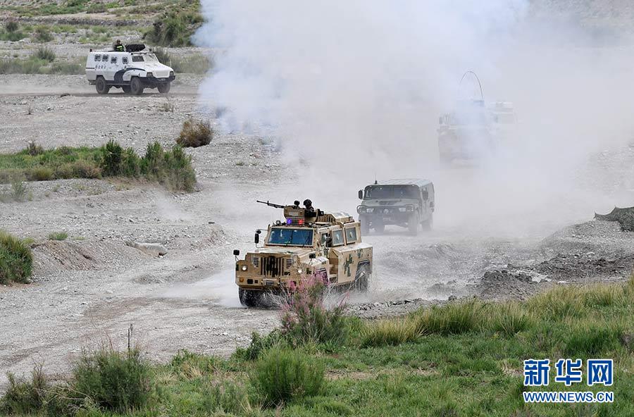 2017年6月27日,代號(hào)為“天山-3號(hào)(2017)”的上海合作組織成員國中吉邊防部門聯(lián)合反恐演習(xí)在中吉兩國邊境同時(shí)打響。新華社記者 王菲 攝
