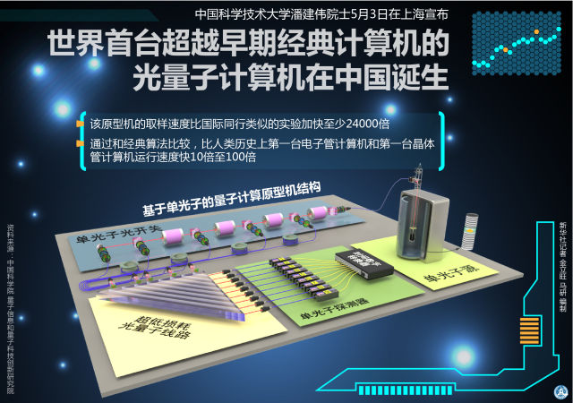 2017年5月3日,世界首臺超越早期經(jīng)典計算機(jī)的光量子計算機(jī)在中國誕生 (新華社記者 金立旺 馬研 編制)
