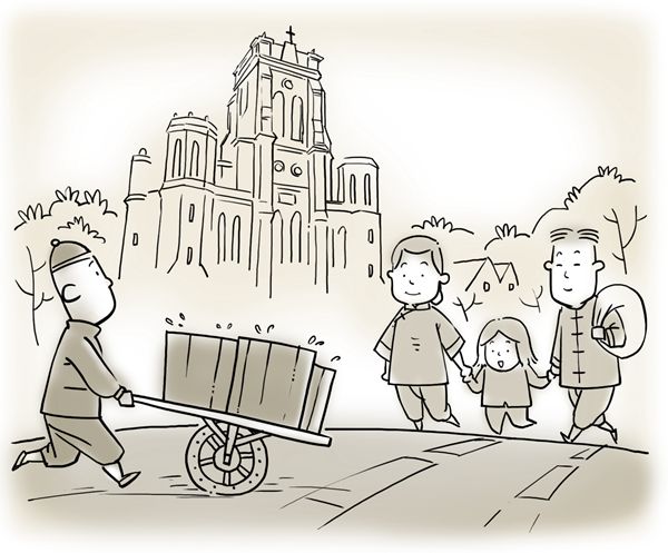 每天推著水車到河邊取水,然后挨家挨戶送水。
