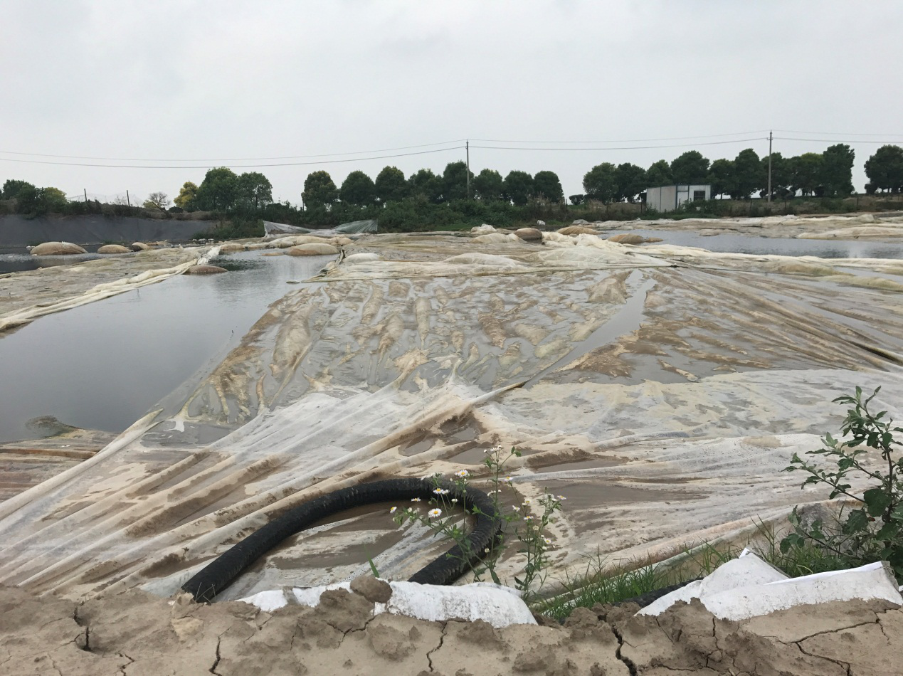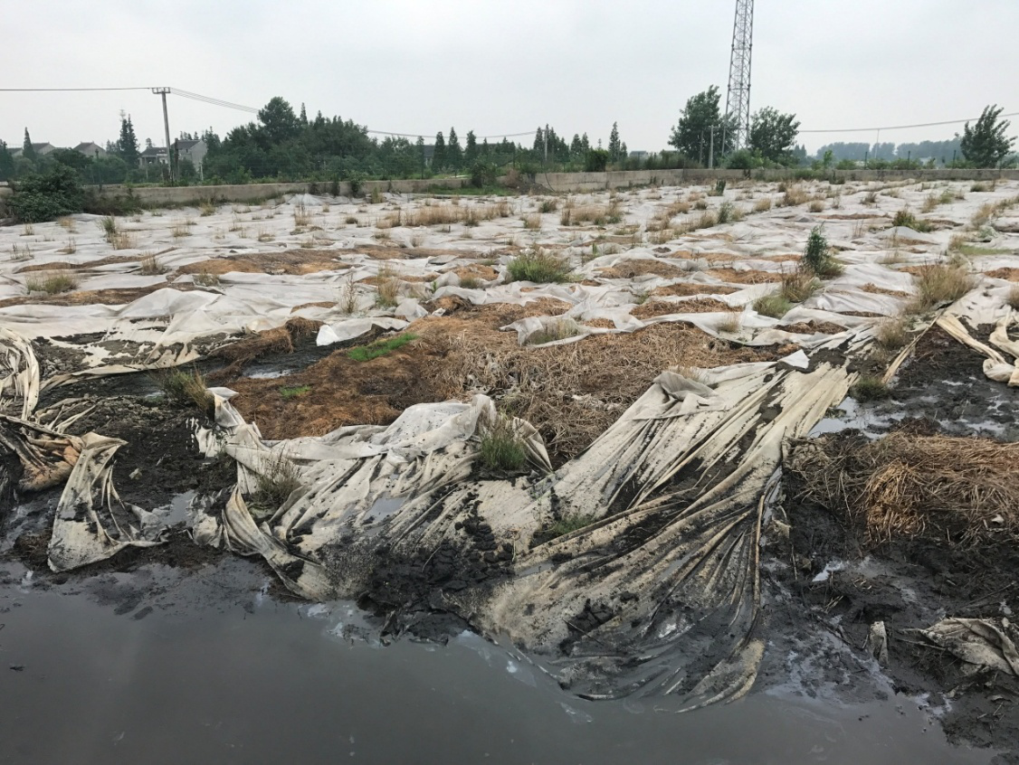 圖1 污泥池僅覆蓋塑料薄膜