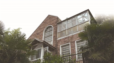 從整體上看,這棟房屋因長(zhǎng)時(shí)間沒(méi)人居住,顯露出衰敗跡象。從鐵門(mén)可以看見(jiàn)院內(nèi)臺(tái)階上的縫隙間長(zhǎng)出不少野生植物,最高的一棵有一米左右。二樓窗框及屋頂煙囪都有破損痕跡。
