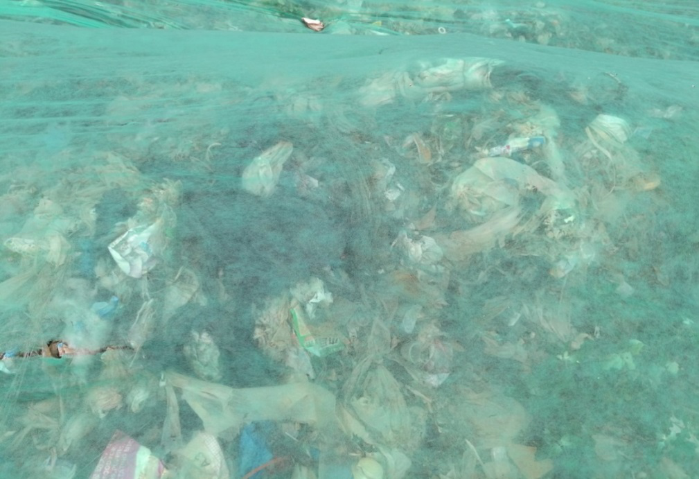 圖5:三善堂臨時(shí)垃圾堆場(chǎng)綠化膜下的垃圾清晰可見