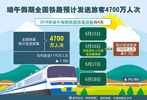 圖表:端午假期全國(guó)鐵路預(yù)計(jì)發(fā)送旅客4700萬(wàn)人次 新華社發(fā) 朱禹 制圖