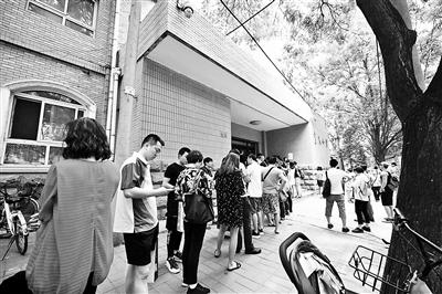 資料圖:排隊(duì)的家長。圖片來源:北京青年報(bào) 攝影/本報(bào)記者 袁藝