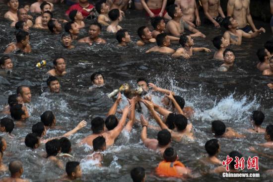 6月18日,正值端午佳節(jié),湖南鳳凰古城沱江河上一年一度的搶鴨子習俗吸引了數(shù)萬游人圍觀。楊華峰 攝