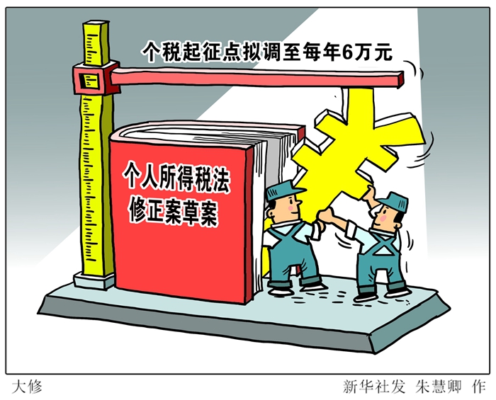 6月19日提請(qǐng)全國人大常委會(huì)初次審議的個(gè)人所得稅法修正案草案明確規(guī)定:對(duì)部分勞動(dòng)性所得實(shí)行綜合征稅;優(yōu)化調(diào)整稅率結(jié)構(gòu);綜合所得基本減除費(fèi)用標(biāo)準(zhǔn),即通常說的起征點(diǎn),提高至5000元/月(6萬元/年);首次增設(shè)專項(xiàng)附加扣除……這標(biāo)志著我國建立綜合與分類相結(jié)合的個(gè)人所得稅制改革邁出實(shí)質(zhì)性的一步。新華社發(fā) 朱慧卿 作