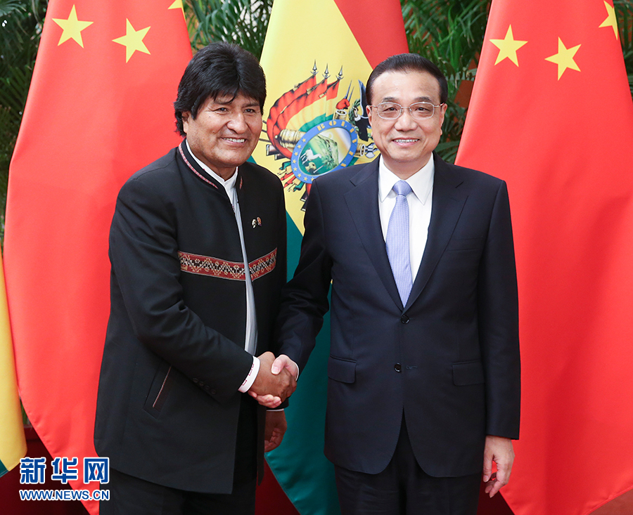 李克強(qiáng)指出,中方愿同玻方抓住兩國關(guān)系發(fā)展的新機(jī)遇,推動(dòng)經(jīng)貿(mào)、旅游、人文合作,增加進(jìn)口玻方有競(jìng)爭(zhēng)力、高質(zhì)量的產(chǎn)品。加強(qiáng)產(chǎn)能合作,深化資源開發(fā)利用,推動(dòng)玻工業(yè)化進(jìn)程。中玻合作是南南合作的組成部分,中方愿同包括玻方在內(nèi)的拉美國家一道,維護(hù)發(fā)展中國家共同利益,促進(jìn)世界和平、穩(wěn)定與發(fā)展。
