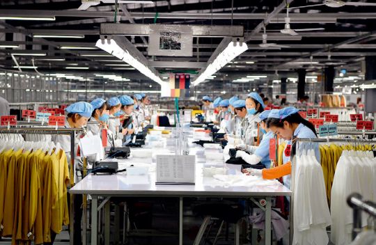 河南省商水縣阿爾本制衣有限公司女工正在檢品車(chē)間工作 李鑫攝/本刊