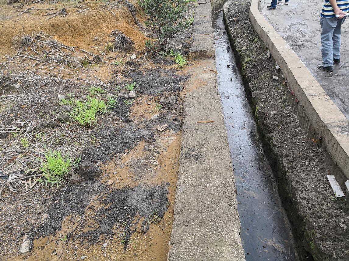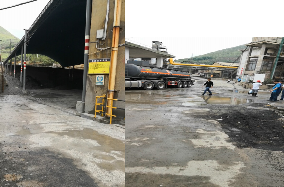 廠區(qū)沒(méi)有建設(shè)初期雨水收集系統(tǒng)?,F(xiàn)場(chǎng)檢查時(shí)正值雨后,地面散落的含重金屬?gòu)U渣、粉塵經(jīng)雨水沖刷進(jìn)入雨水溝,最終匯入廠區(qū)低洼處。但由于收集池容積小,大量雨水混著含有重金屬的污水溢流至廠區(qū)道路,廠區(qū)污水橫流。
