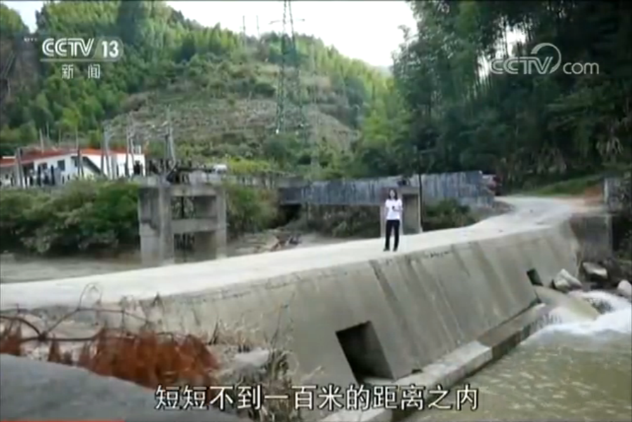 央視記者在江西贛州崇義縣境內(nèi)的樂洞河調(diào)查時發(fā)現(xiàn),小水電站的密集程度讓人吃驚,最小間距僅僅只100米。